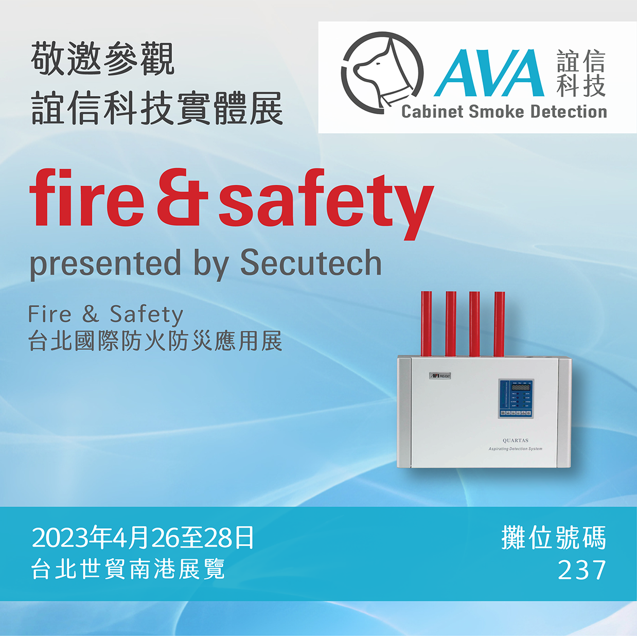 2023年4 月 26 日至 28 日, Secutech 2023 與我們會面。 我們將展示我們最新的吸氣式煙霧探測系統,以及建築物和高風險設備火災探測的最佳設備。 請搜尋展位 237,期盼與您的會面
